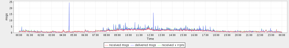 avg(received msgs) = 1.36 avg(delivered msgs) = 1.64 avg(received x rcpts) = 1.80