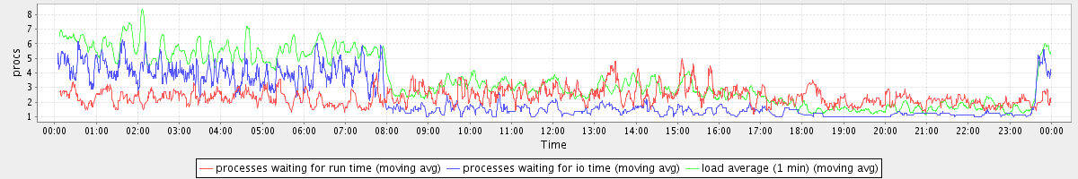 avg(processes waiting for run time) = 1.69 avg(processes waiting for io time) = 1.75 avg(load average (1 min)) = 3.53