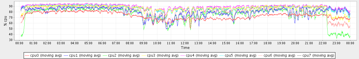 avg(cpu0) = 73.30 avg(cpu1) = 80.03 avg(cpu2) = 75.01 avg(cpu3) = 86.14 avg(cpu4) = 89.78 avg(cpu5) = 87.35 avg(cpu6) = 79.96 avg(cpu7) = 87.12