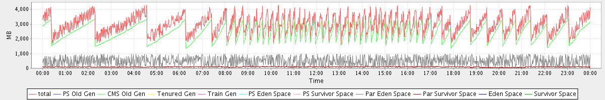 avg(total) = 2983.51 avg(PS Old Gen) = 0.00 avg(CMS Old Gen) = 2412.12 avg(Tenured Gen) = 0.00 avg(Train Gen) = 0.00 avg(PS Eden Space) = 0.00 avg(PS Survivor Space) = 0.00 avg(Par Eden Space) = 485.37 avg(Par Survivor Space) = 86.03 avg(Eden Space) = 0.00 avg(Survivor Space) = 0.00