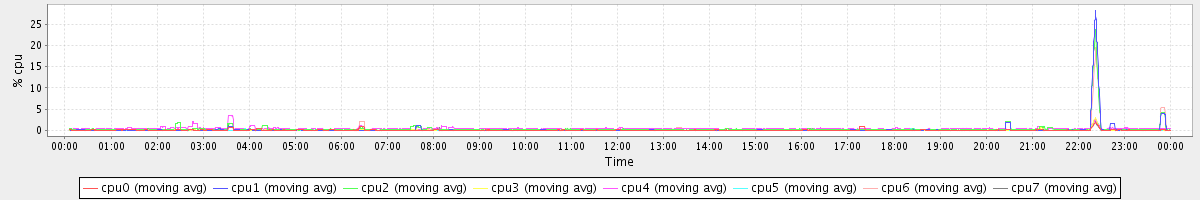 avg(cpu0) = 1.05 avg(cpu1) = 0.83 avg(cpu2) = 0.71 avg(cpu3) = 0.71 avg(cpu4) = 0.47 avg(cpu5) = 0.50 avg(cpu6) = 0.37 avg(cpu7) = 0.34