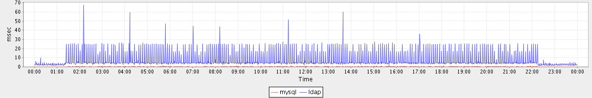 avg(mysql) = 0.19 avg(ldap) = 7.23