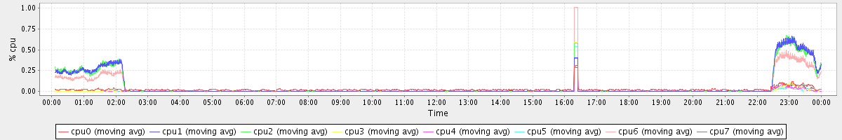 avg(cpu0) = 0.90 avg(cpu1) = 1.05 avg(cpu2) = 0.99 avg(cpu3) = 0.68 avg(cpu4) = 0.52 avg(cpu5) = 0.48 avg(cpu6) = 0.59 avg(cpu7) = 0.37