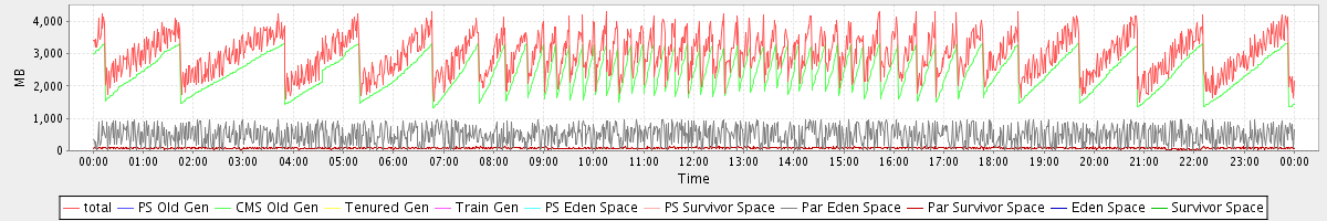 avg(total) = 2983.15 avg(PS Old Gen) = 0.00 avg(CMS Old Gen) = 2413.93 avg(Tenured Gen) = 0.00 avg(Train Gen) = 0.00 avg(PS Eden Space) = 0.00 avg(PS Survivor Space) = 0.00 avg(Par Eden Space) = 485.53 avg(Par Survivor Space) = 83.68 avg(Eden Space) = 0.00 avg(Survivor Space) = 0.00