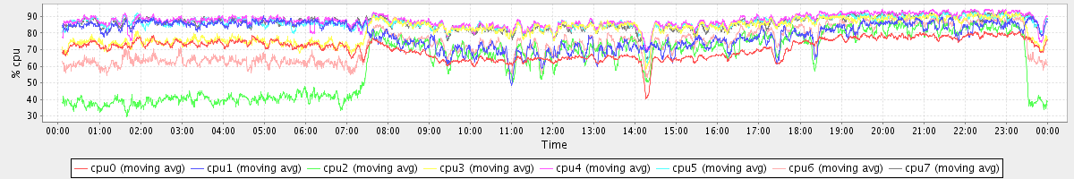 avg(cpu0) = 70.77 avg(cpu1) = 79.13 avg(cpu2) = 62.89 avg(cpu3) = 81.73 avg(cpu4) = 87.53 avg(cpu5) = 86.24 avg(cpu6) = 73.08 avg(cpu7) = 86.09