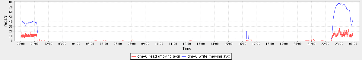 avg(dm-1 read) = 746.32 avg(dm-1 write) = 0.67