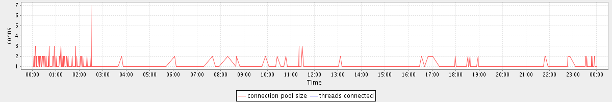 avg(connection pool size) = 0.34 avg(threads connected) = 0.00