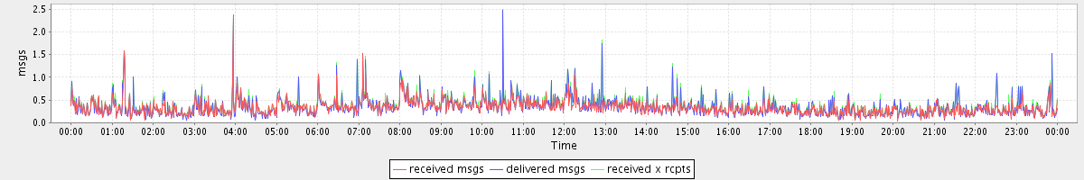 avg(received msgs) = 0.33 avg(delivered msgs) = 0.34 avg(received x rcpts) = 0.38