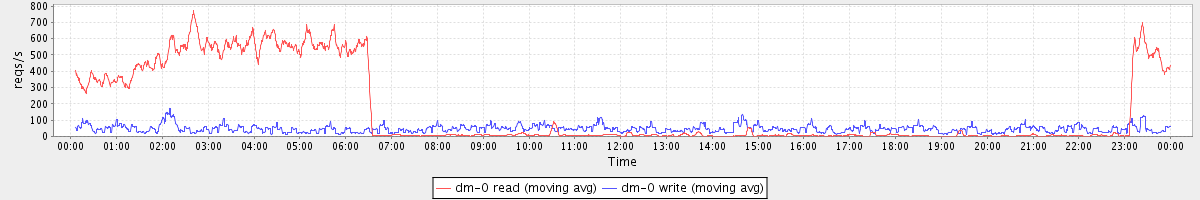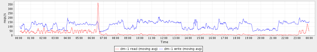 avg(dm-1 read) = 269.55 avg(dm-1 write) = 741.22