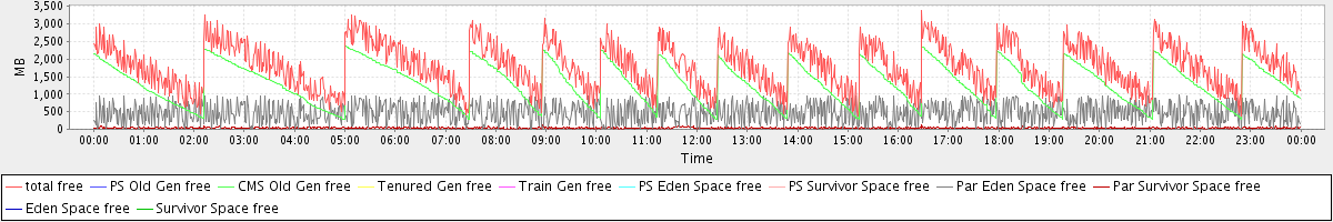 avg(total free) = 1798.92 avg(PS Old Gen free) = 0.00 avg(CMS Old Gen free) = 1291.96 avg(Tenured Gen free) = 0.00 avg(Train Gen free) = 0.00 avg(PS Eden Space free) = 0.00 avg(PS Survivor Space free) = 0.00 avg(Par Eden Space free) = 470.73 avg(Par Survivor Space free) = 36.23 avg(Eden Space free) = 0.00 avg(Survivor Space free) = 0.00