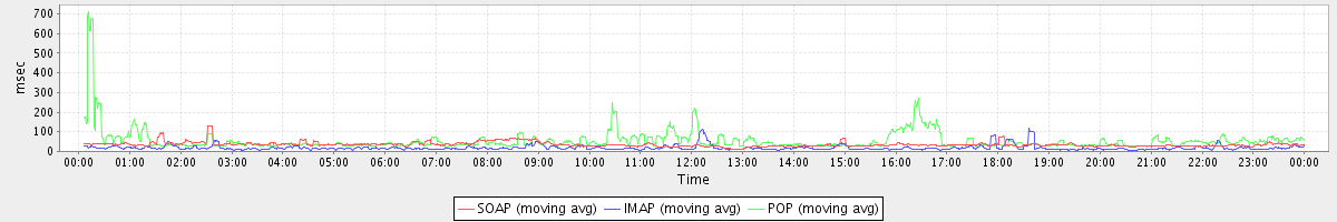 Host zm07.stanford.edu: Mailboxd: Response Time by Client Protocol