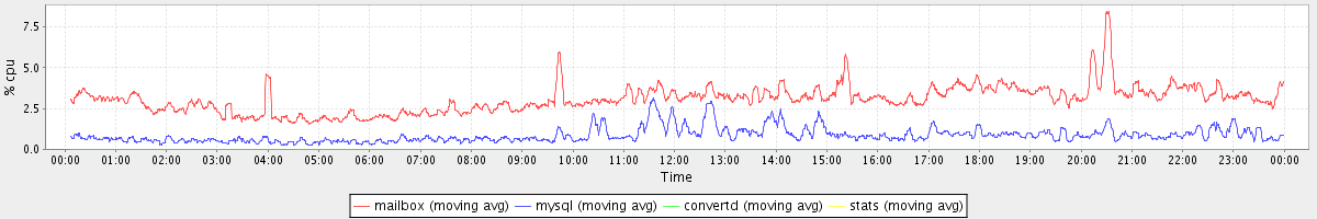 avg(mailbox) = 3.07 avg(mysql) = 0.86 avg(convertd) = 0.00 avg(stats) = 0.00