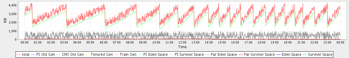 avg(total) = 2896.97 avg(PS Old Gen) = 0.00 avg(CMS Old Gen) = 2360.28 avg(Tenured Gen) = 0.00 avg(Train Gen) = 0.00 avg(PS Eden Space) = 0.00 avg(PS Survivor Space) = 0.00 avg(Par Eden Space) = 471.13 avg(Par Survivor Space) = 65.55 avg(Eden Space) = 0.00 avg(Survivor Space) = 0.00