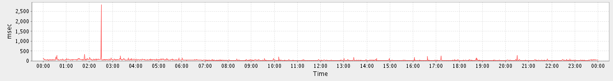 max(SearchConvRequest) = 43.00 max(GetFolderRequest) = 255.00 max(SearchRequest) = 60.00 max(MsgActionRequest.delete) = 38.00 max(NoOpRequest) = 97.00 max(SearchGalRequest) = 71.00 max(SyncRequest) = 588.00 max(GetEffectiveFolderPermsRequest) = 48.00 max(ConvActionRequest.trash) = 45.00 max(GetAppointmentRequest) = 593.00