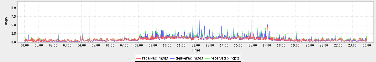 avg(received msgs) = 0.85 avg(delivered msgs) = 0.90 avg(received x rcpts) = 1.09