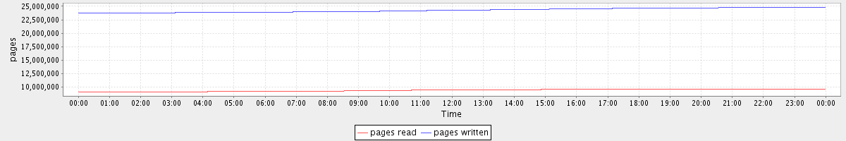 avg(pages read) = 9394940.70 avg(pages written) = 24267407.96