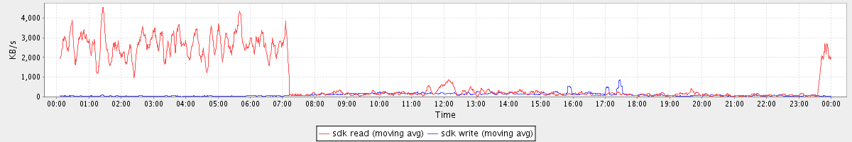 avg(sda2 read) = 0.95 avg(sda2 write) = 8.44