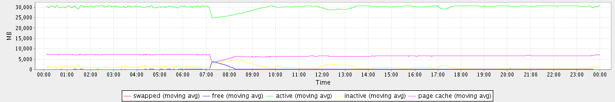 avg(swapped) = 0.23 avg(free) = 255.05 avg(active) = 29941.19 avg(inactive) = 1253.03 avg(page cache) = 6655.78