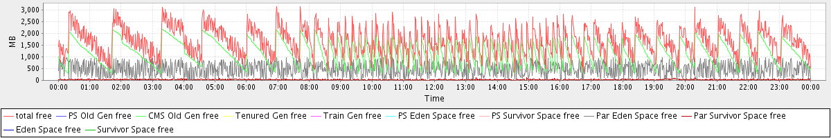avg(total free) = 1667.97 avg(PS Old Gen free) = 0.00 avg(CMS Old Gen free) = 1156.22 avg(Tenured Gen free) = 0.00 avg(Train Gen free) = 0.00 avg(PS Eden Space free) = 0.00 avg(PS Survivor Space free) = 0.00 avg(Par Eden Space free) = 482.14 avg(Par Survivor Space free) = 29.61 avg(Eden Space free) = 0.00 avg(Survivor Space free) = 0.00