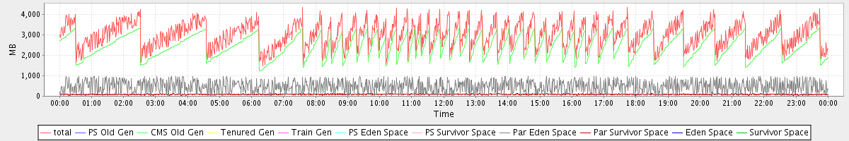 avg(total) = 3009.84 avg(PS Old Gen) = 0.00 avg(CMS Old Gen) = 2437.40 avg(Tenured Gen) = 0.00 avg(Train Gen) = 0.00 avg(PS Eden Space) = 0.00 avg(PS Survivor Space) = 0.00 avg(Par Eden Space) = 483.37 avg(Par Survivor Space) = 89.07 avg(Eden Space) = 0.00 avg(Survivor Space) = 0.00