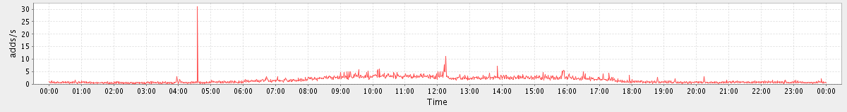 max(MsgActionRequest.move) = 128.00 max(SearchRequest) = 608.00 max(GetContactsRequest) = 276.00 max(MsgActionRequest.delete) = 928.00 max(NoOpRequest) = 247.00 max(MsgActionRequest.update) = 162.00 max(GetDomainInfoRequest) = 255.00 max(GetFolderRequest) = 132.00 max(SyncRequest) = 2113.00 max(GetAppointmentRequest) = 283.00