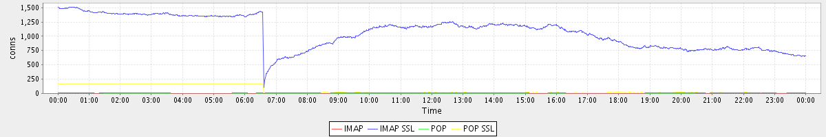 Host zm05.stanford.edu: Mailboxd: Active Connections by Client Protocol