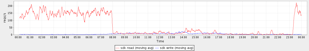 avg(sdk read) = 1059.33 avg(sdk write) = 108.11