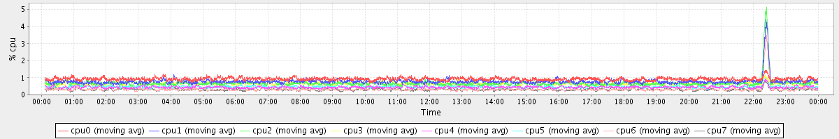 avg(cpu0) = 0.10 avg(cpu1) = 0.23 avg(cpu2) = 0.40 avg(cpu3) = 0.11 avg(cpu4) = 0.44 avg(cpu5) = 0.05 avg(cpu6) = 0.16 avg(cpu7) = 0.05
