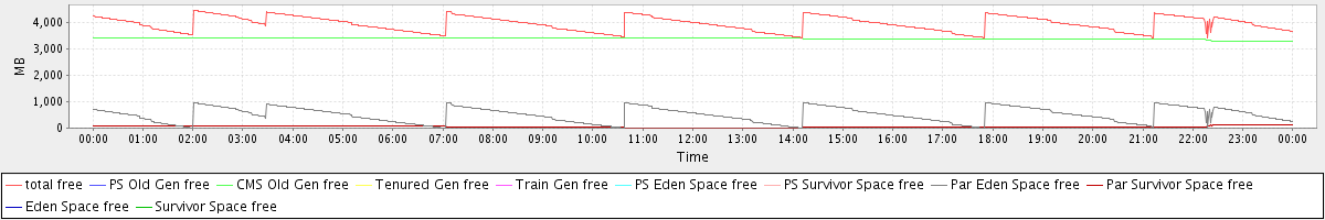 avg(total free) = 3947.63 avg(PS Old Gen free) = 0.00 avg(CMS Old Gen free) = 3395.66 avg(Tenured Gen free) = 0.00 avg(Train Gen free) = 0.00 avg(PS Eden Space free) = 0.00 avg(PS Survivor Space free) = 0.00 avg(Par Eden Space free) = 501.80 avg(Par Survivor Space free) = 50.16 avg(Eden Space free) = 0.00 avg(Survivor Space free) = 0.00