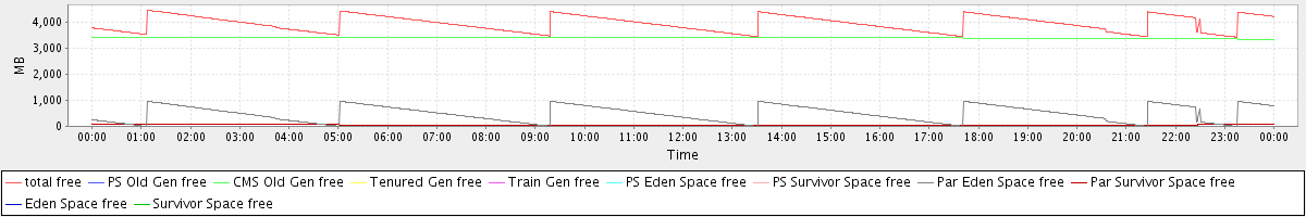 avg(total free) = 3936.99 avg(PS Old Gen free) = 0.00 avg(CMS Old Gen free) = 3400.21 avg(Tenured Gen free) = 0.00 avg(Train Gen free) = 0.00 avg(PS Eden Space free) = 0.00 avg(PS Survivor Space free) = 0.00 avg(Par Eden Space free) = 483.71 avg(Par Survivor Space free) = 53.07 avg(Eden Space free) = 0.00 avg(Survivor Space free) = 0.00