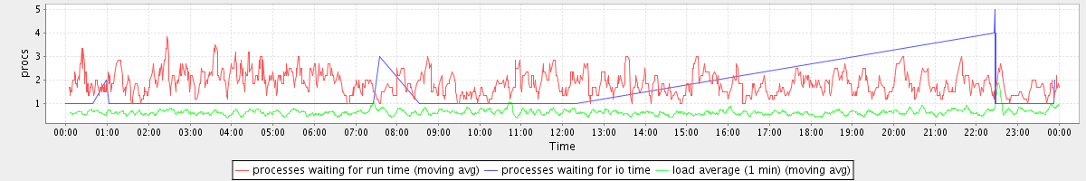avg(processes waiting for run time) = 0.78 avg(processes waiting for io time) = 0.02 avg(load average (1 min)) = 0.62