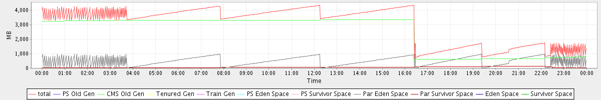 avg(total) = 3012.74 avg(PS Old Gen) = 0.00 avg(CMS Old Gen) = 2463.81 avg(Tenured Gen) = 0.00 avg(Train Gen) = 0.00 avg(PS Eden Space) = 0.00 avg(PS Survivor Space) = 0.00 avg(Par Eden Space) = 484.70 avg(Par Survivor Space) = 64.23 avg(Eden Space) = 0.00 avg(Survivor Space) = 0.00
