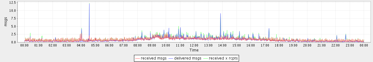 avg(received msgs) = 0.80 avg(delivered msgs) = 0.75 avg(received x rcpts) = 0.98