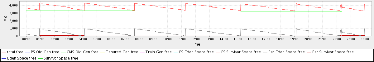 avg(total free) = 3775.45 avg(PS Old Gen free) = 0.00 avg(CMS Old Gen free) = 3268.17 avg(Tenured Gen free) = 0.00 avg(Train Gen free) = 0.00 avg(PS Eden Space free) = 0.00 avg(PS Survivor Space free) = 0.00 avg(Par Eden Space free) = 457.85 avg(Par Survivor Space free) = 49.42 avg(Eden Space free) = 0.00 avg(Survivor Space free) = 0.00