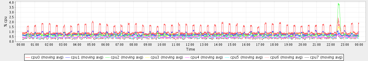 avg(cpu0) = 1.04 avg(cpu1) = 0.75 avg(cpu2) = 0.69 avg(cpu3) = 0.70 avg(cpu4) = 0.50 avg(cpu5) = 0.47 avg(cpu6) = 0.38 avg(cpu7) = 0.36