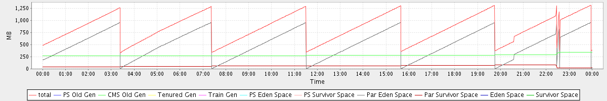 avg(total) = 844.39 avg(PS Old Gen) = 0.00 avg(CMS Old Gen) = 280.85 avg(Tenured Gen) = 0.00 avg(Train Gen) = 0.00 avg(PS Eden Space) = 0.00 avg(PS Survivor Space) = 0.00 avg(Par Eden Space) = 504.21 avg(Par Survivor Space) = 59.33 avg(Eden Space) = 0.00 avg(Survivor Space) = 0.00