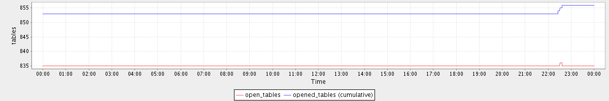 avg(open_tables) = 835.00 avg(opened_tables (cumulative)) = 853.19