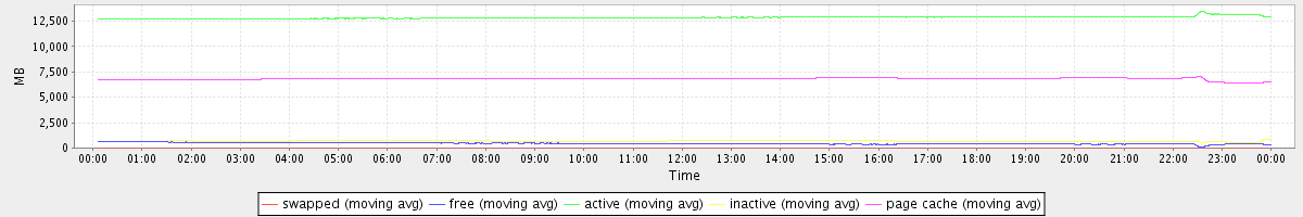 avg(swapped) = 0.23 avg(free) = 446.42 avg(active) = 12861.81 avg(inactive) = 680.03 avg(page cache) = 6825.84