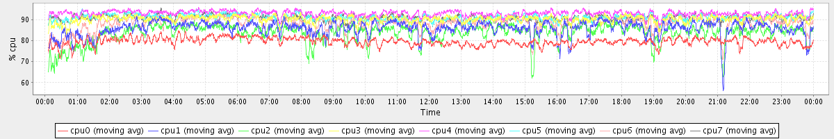 avg(cpu0) = 79.58 avg(cpu1) = 85.74 avg(cpu2) = 83.54 avg(cpu3) = 90.16 avg(cpu4) = 92.94 avg(cpu5) = 90.96 avg(cpu6) = 87.98 avg(cpu7) = 90.77