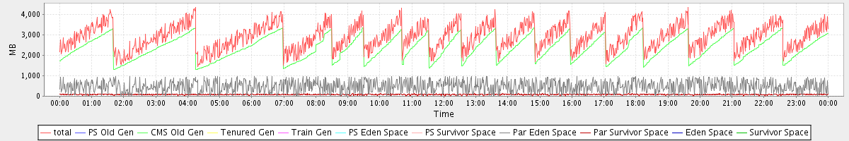 avg(total) = 2918.38 avg(PS Old Gen) = 0.00 avg(CMS Old Gen) = 2355.02 avg(Tenured Gen) = 0.00 avg(Train Gen) = 0.00 avg(PS Eden Space) = 0.00 avg(PS Survivor Space) = 0.00 avg(Par Eden Space) = 482.05 avg(Par Survivor Space) = 81.31 avg(Eden Space) = 0.00 avg(Survivor Space) = 0.00