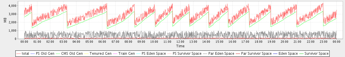 avg(total) = 2886.70 avg(PS Old Gen) = 0.00 avg(CMS Old Gen) = 2319.22 avg(Tenured Gen) = 0.00 avg(Train Gen) = 0.00 avg(PS Eden Space) = 0.00 avg(PS Survivor Space) = 0.00 avg(Par Eden Space) = 487.20 avg(Par Survivor Space) = 80.28 avg(Eden Space) = 0.00 avg(Survivor Space) = 0.00