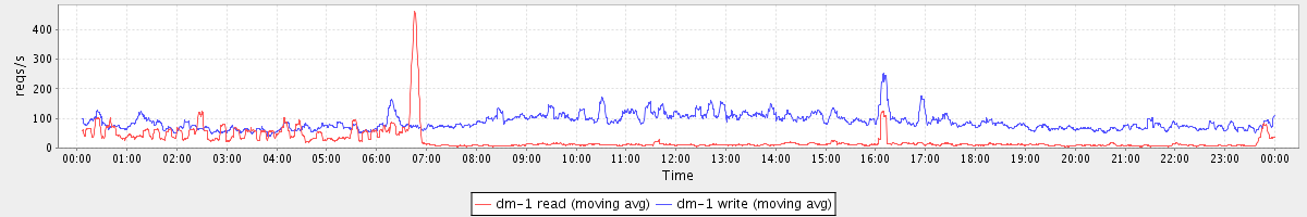 avg(dm-1 read) = 25.94 avg(dm-1 write) = 88.03