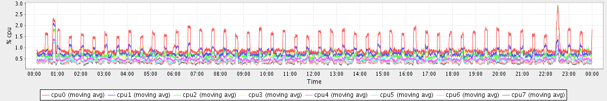 avg(cpu0) = 1.03 avg(cpu1) = 0.76 avg(cpu2) = 0.68 avg(cpu3) = 0.71 avg(cpu4) = 0.50 avg(cpu5) = 0.47 avg(cpu6) = 0.37 avg(cpu7) = 0.35