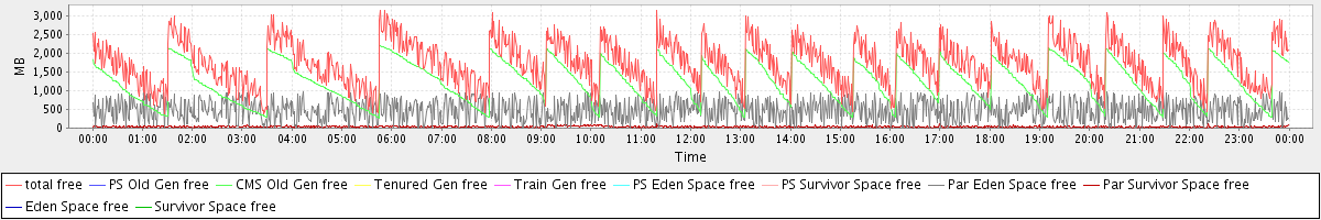 avg(total free) = 1743.76 avg(PS Old Gen free) = 0.00 avg(CMS Old Gen free) = 1233.07 avg(Tenured Gen free) = 0.00 avg(Train Gen free) = 0.00 avg(PS Eden Space free) = 0.00 avg(PS Survivor Space free) = 0.00 avg(Par Eden Space free) = 475.55 avg(Par Survivor Space free) = 35.15 avg(Eden Space free) = 0.00 avg(Survivor Space free) = 0.00