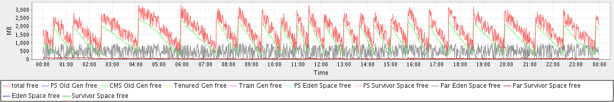 avg(total free) = 1779.56 avg(PS Old Gen free) = 0.00 avg(CMS Old Gen free) = 1245.84 avg(Tenured Gen free) = 0.00 avg(Train Gen free) = 0.00 avg(PS Eden Space free) = 0.00 avg(PS Survivor Space free) = 0.00 avg(Par Eden Space free) = 491.19 avg(Par Survivor Space free) = 42.52 avg(Eden Space free) = 0.00 avg(Survivor Space free) = 0.00