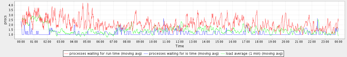 avg(processes waiting for run time) = 1.30 avg(processes waiting for io time) = 0.27 avg(load average (1 min)) = 1.46