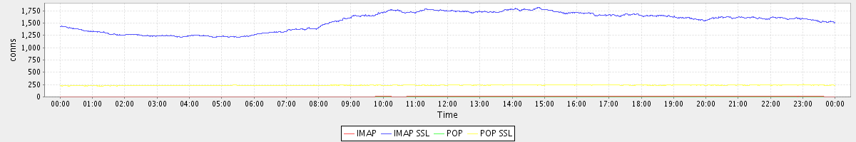 avg(IMAP) = 7.39 avg(IMAP SSL) = 1537.35 avg(POP) = 0.11 avg(POP SSL) = 235.85