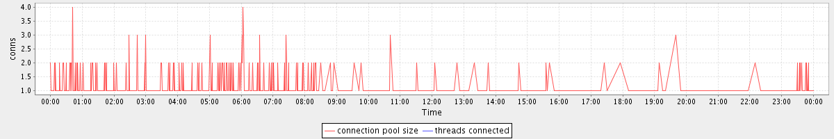 avg(connection pool size) = 0.56 avg(threads connected) = 0.00