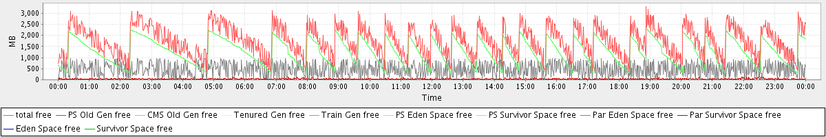 avg(total free) = 1764.09 avg(PS Old Gen free) = 0.00 avg(CMS Old Gen free) = 1254.23 avg(Tenured Gen free) = 0.00 avg(Train Gen free) = 0.00 avg(PS Eden Space free) = 0.00 avg(PS Survivor Space free) = 0.00 avg(Par Eden Space free) = 473.75 avg(Par Survivor Space free) = 36.11 avg(Eden Space free) = 0.00 avg(Survivor Space free) = 0.00