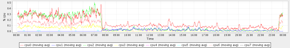 avg(cpu0) = 0.15 avg(cpu1) = 0.01 avg(cpu2) = 0.11 avg(cpu3) = 0.03 avg(cpu4) = 0.00 avg(cpu5) = 0.00 avg(cpu6) = 0.06 avg(cpu7) = 0.00